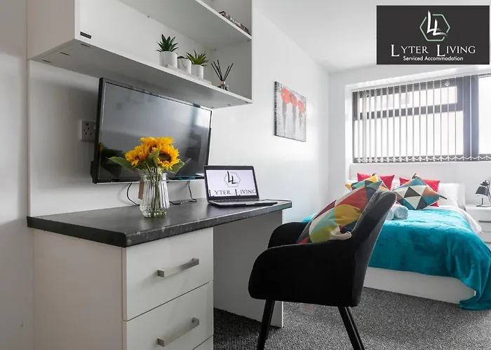 Studio Apartments By Lyter Living Desks & Wifi - Monthly Stays Available dysponuje miejscem do siedzenia z biurkiem oraz nowoczesnymi udogodnieniami, takimi jak telewizja satelitarna. W pokojach znajduje się czujnik dymu. Na życzenie dostępne oddzielna toaleta i prysznic. Ponadto dostępne są suszarka, przybory toaletowe i ręczniki.